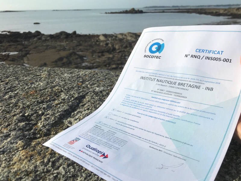 La certification Qualiopi se base sur un référentiel national qualité, et fait suite à un audit complet des formations de l'INB. Un premier audit réalisé en septembre 2020 est venu valider la qualité des formations proposées sur les sites de Concarneau et Port la Forêt. 7 critères et 32 indicateurs ont ainsi été passés au crible. Notamment la capacité à identifier et à concilier les attentes des entreprises et des futurs professionnels en formation, ou la pertinence des moyens pédagogiques. L'audit sera suivi par un audit de surveillance à mi-parcours (dans deux ans).